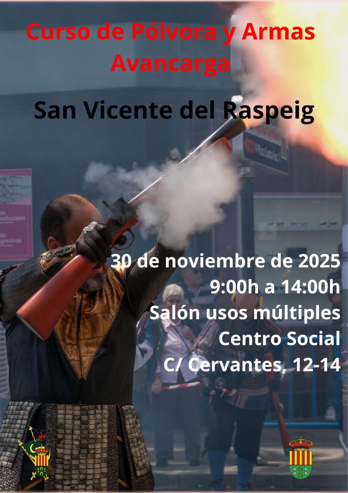 Organizado por el Excmo. Ayuntamiento de San Vicente del Raspeig y la Federación Unión de Comparsas de Moros y Cristianos «Ber Largas», el próximo día 30 de Noviembre de 2025 se realizará el Curso de Pólvora y Armas de Avancarga de cara a las próximas Fiestas de Moros y Cristianos del 2026.